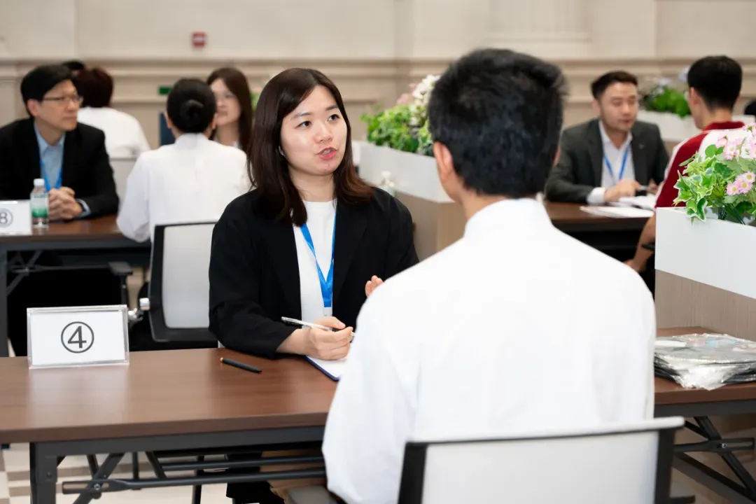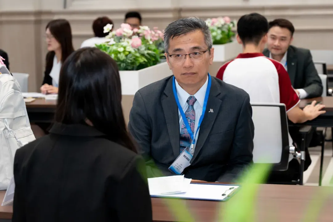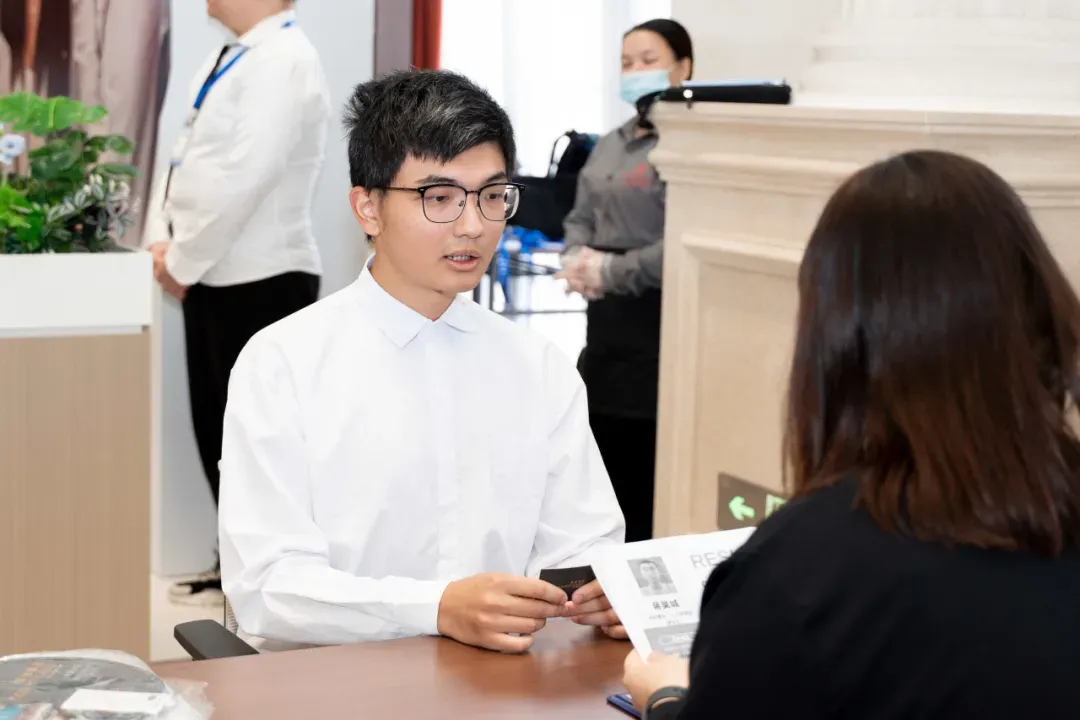 招聘会进入领袖小组讨论及实习生面试阶段。学生们根据兴趣选择了不同的小组(客房部、餐饮部及厨房部、后勤部门),与来自万豪国际集团-大中华(香港区)酒店的部门主管和人力资源总监进行了面对面的交流与探讨。行业领袖们步入讨论现场,亲切地和学生们打招呼,有的还幽默地用几句俏皮话开场,引得大家笑声连连。在随后的分享环节中,部门主管们回忆起自己初入行业时的青涩,讲述着面对突发状况时的紧张与手忙脚乱,也分享着凭借努力获得客户认可时的喜悦与自豪;人力资源总监则谈到了在人才选拔与培养过程中的挑战与成就,强调了坚持与学习的重要性。学生们听得全神贯注,时而因有趣的经历而开怀大笑,时而因感人的奋斗故事而眼眶湿润。他们积极提问,与行业领袖们热烈互动,现场气氛十分活跃。同时,实习生面试工作也在紧张而有序地进行着,学生们纷纷展示出自己的专业素养和综合能力,争取获得这份宝贵的实习机会。