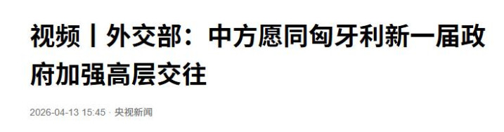 毛焦尔胜选,中方祝贺并强调中匈合作原则・澎湃新闻・2026 年 4 月 13 日
