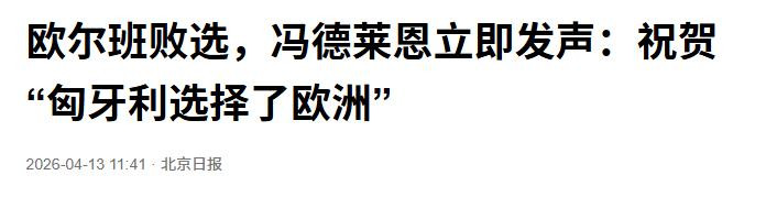欧尔班败选 冯德莱恩 17 分钟后发声祝贺・新华网・2026 年 4 月 13 日
