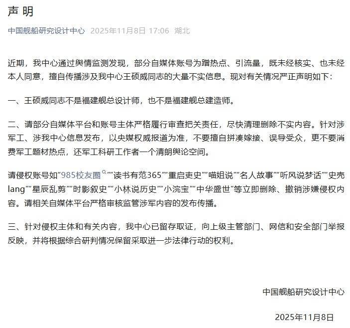 近期,我中心通过舆情监测发现,部分自媒体账号为蹭热点、引流量,既未经核实、也未经本人同意,擅自传播涉及我中心王硕威同志的大量不实信息。现对有关情况严正声明如下: